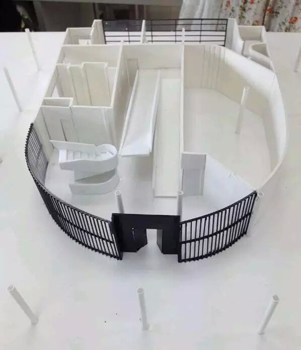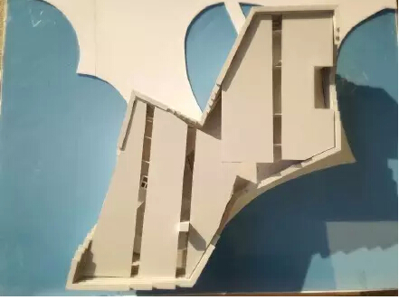 之前看到隈研吾大師v&a at dundee的渲染圖,當(dāng)時(shí)就被美到了,在archidaily和筑龍網(wǎng)上down了圖紙。(結(jié)果做完了發(fā)現(xiàn)原建筑還沒有竣工…汗顏)因?yàn)槲覀兿胱霭咨慕ㄖ?,雪浮板又容易受傷,噴漆的話連接處會(huì)有瑕疵,所以我們選擇了abs板…一種新型塑料,充電寶外殼的材質(zhì),非常硬.....建筑外殼是隈研吾大師一貫的間隙風(fēng)格,所以三個(gè)妹子把十多塊板用美工刀劃成條,不說了都是淚…